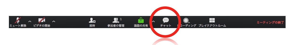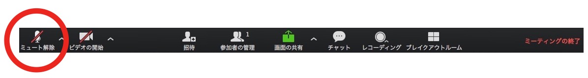 画面の下左端にマイクのマークがありますので、そこに赤い線が入っていると、マイクはオフになっています。