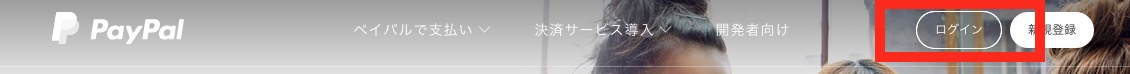 1、ペイパルにアクセス して右上のログインを押します
