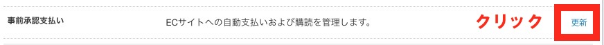 5、事前承認支払いの項目の右「更新」をクリック