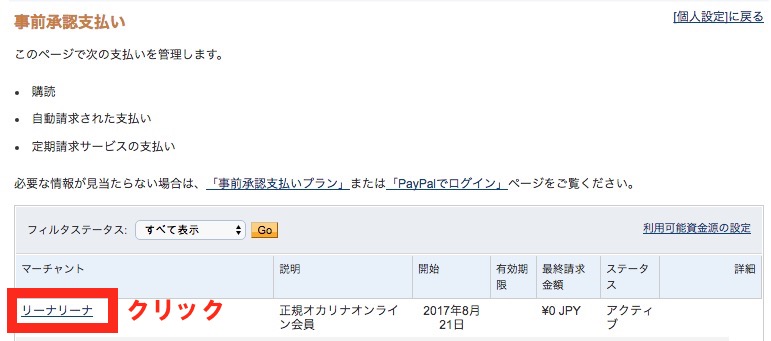 6、支払い一覧の中のリーナリーナをクリック