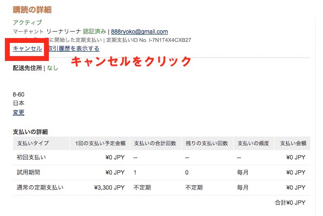 7、購読の詳細の「キャンセル」をクリック