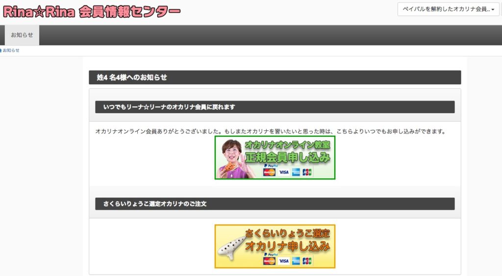 ただし、レッスン予定表などが載っているレッスンページへはログインができなくなります。