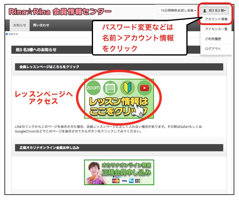 会員レッスンページへはログインができなくなります。